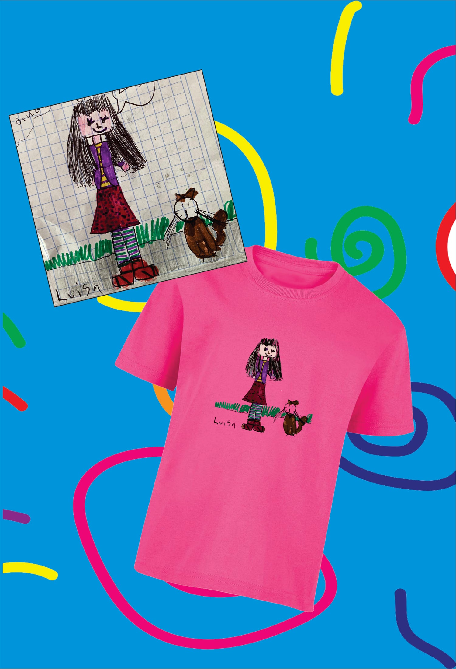 Transformamos el dibujo de tus hijos en una playera única, respetando cada detalle y color, con impresión directa sobre tela, suave, duradera y sin planchas ni viniles.